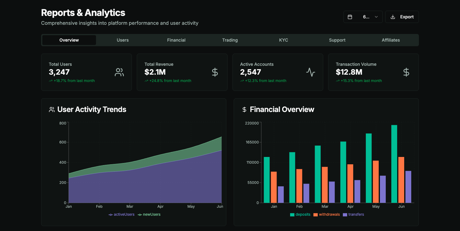 Your Admin CRM and Trader's Room come with built-in AI agents. Ask anything, get answers in seconds, and give traders an experience that feels instant, personal, and effortless.